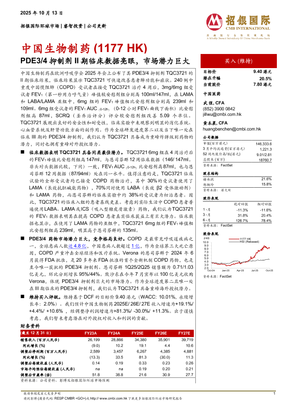 【招银国际环球市场】【202510】中国生物制药(1177 HK)-PDE3/4抑制剂 II期临床数据亮眼,市场潜力巨大-6页