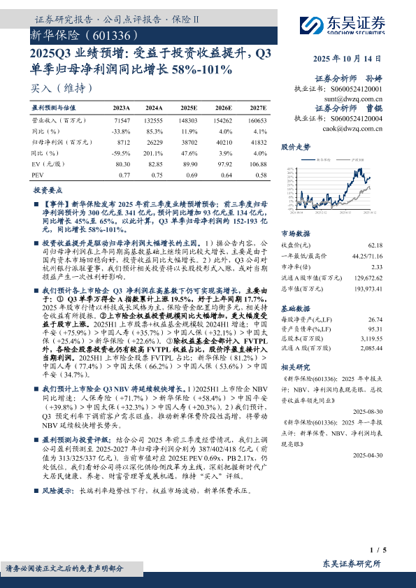 【东吴证券】【202510】新华保险(601336):2025Q3业绩预增:受益于投资收益提升,Q3 单季归母净利润同比增长 58%-101%-5页