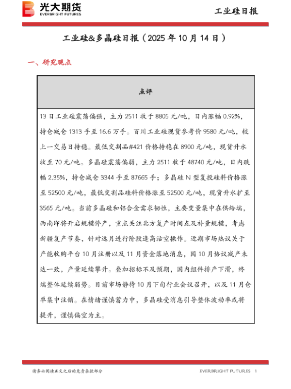 【EVERBRIGHT FUTURES】【202510】工业硅&多晶硅日报(2025年 10月 14日)-8页