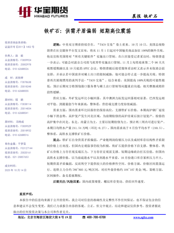 【华宝期货】【202510】铁矿石_供需矛盾偏弱_短期高位震荡-1页