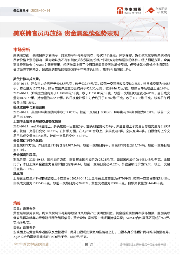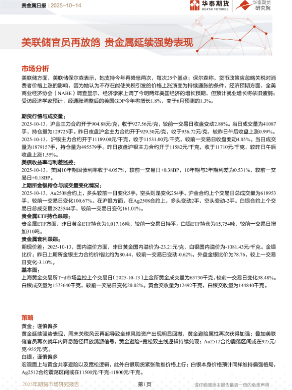 【华泰期货】【202510】美联储官员再放鸽贵金属延续强势表现-7页
