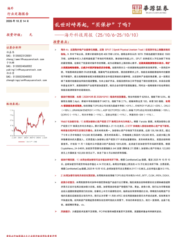 【华源证券】【202510】乱世对峙再起,“买保护”了吗?——海外科技周报(25/10/6-25/10/10)-12页