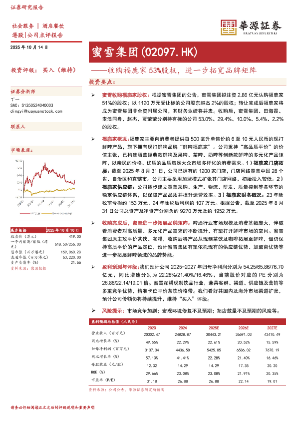 蜜雪集团 投资评级买入 福鹿家 品牌拓展 啤酒行业