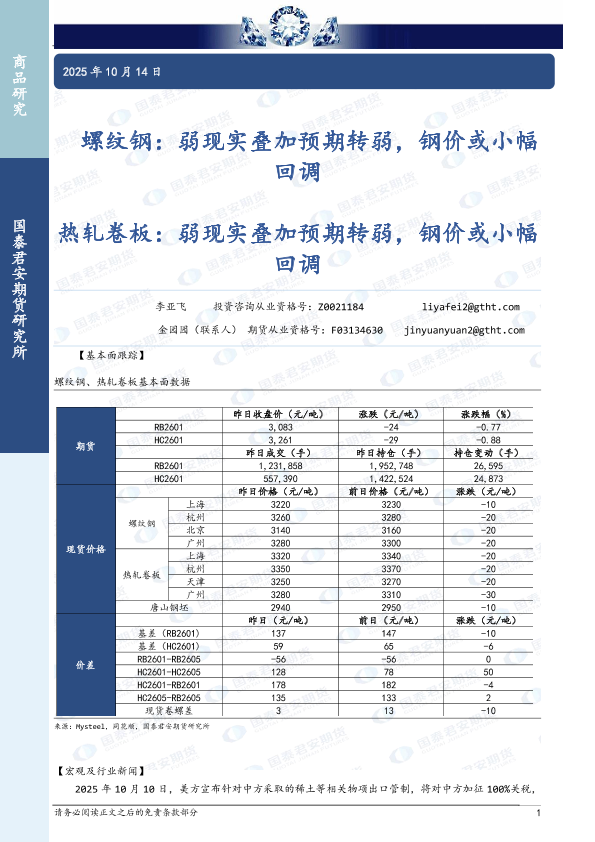 【国泰君安期货】【202510】螺纹钢_弱现实叠加预期转弱_钢价或小幅回调_热轧卷板_弱现实叠加预期转弱_钢价或小幅回调-3页