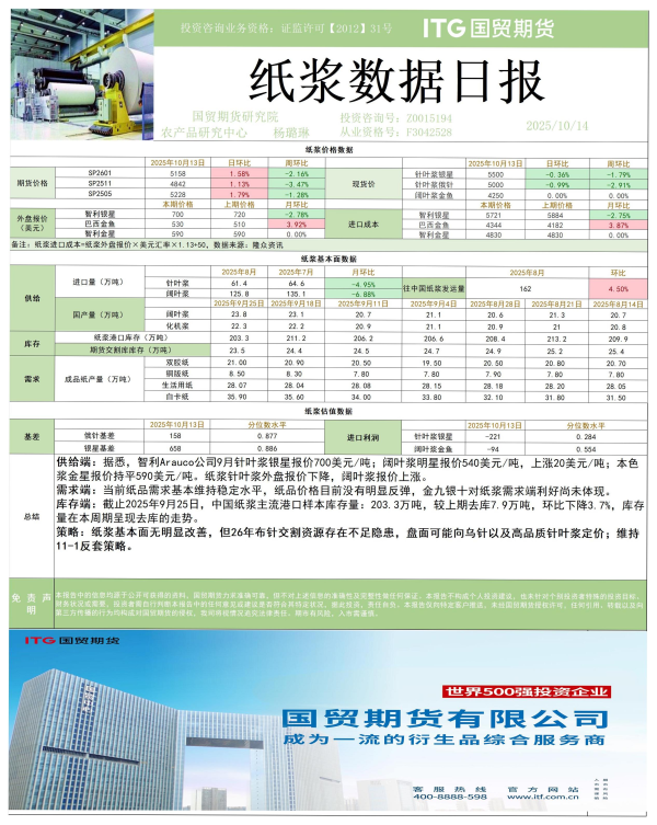 纸浆 期货价格 库存数据 基本面分析 进口成本