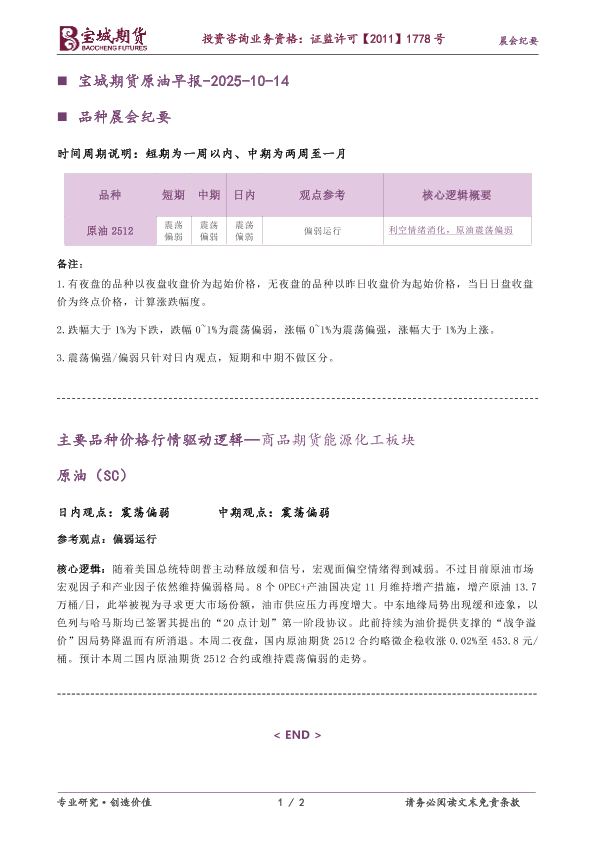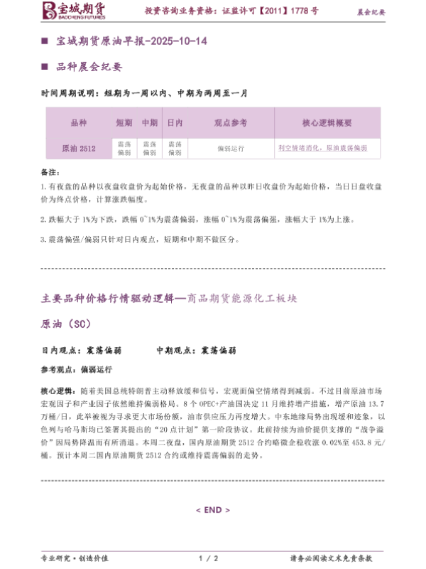 【宝城期货】【202510】宝城期货原油早报-2025-10-14-2页