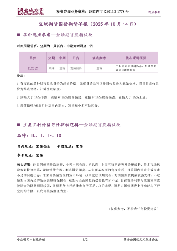 【宝城期货】【202510】宝城期货国债期货早报(2025年 10月 14日)-2页