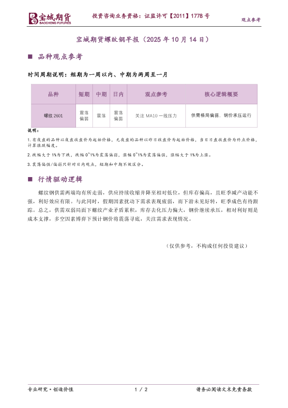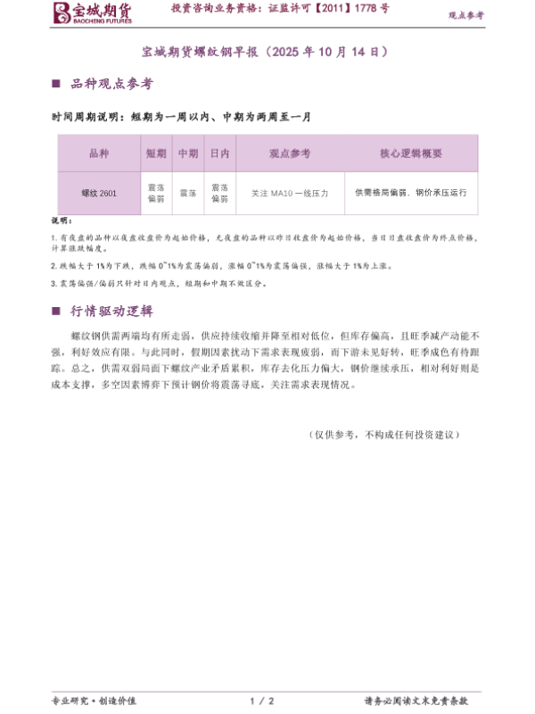 【宝城期货】【202510】宝城期货螺纹钢早报(2025年 10月 14日)-2页