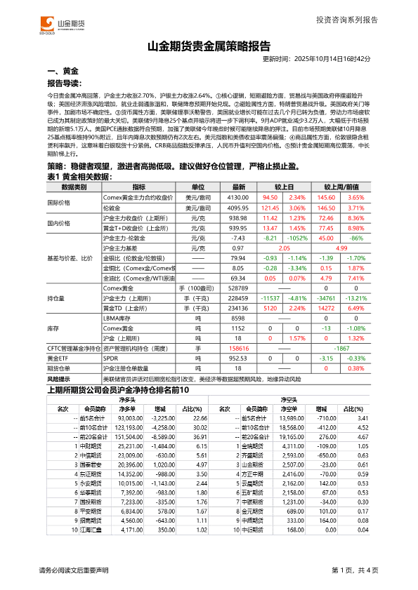 【山金期货】【202510】山金期货贵金属策略报告-4页