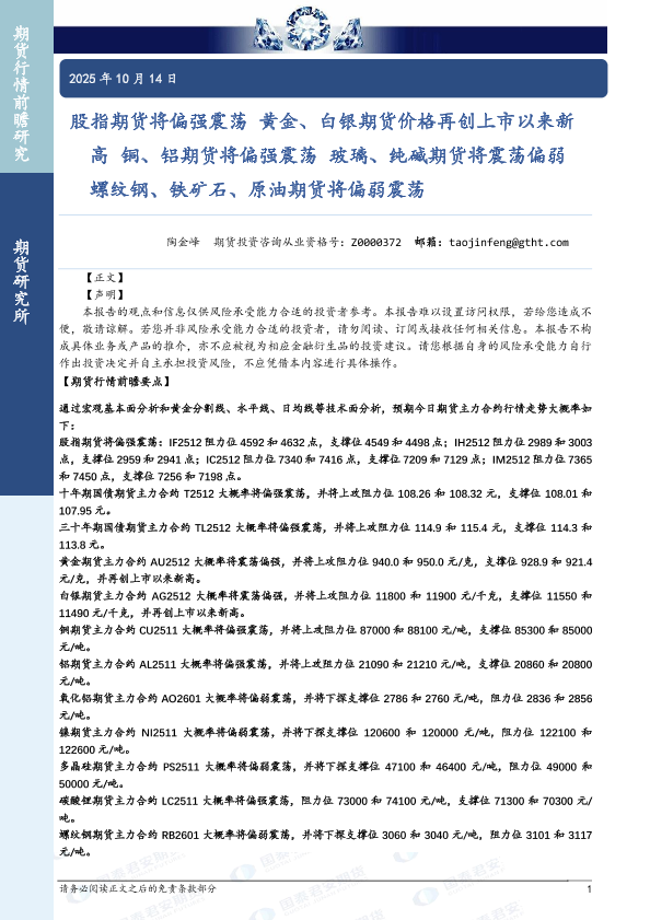 【国泰君安期货】【202510】股指期货将偏强震荡黄金、白银期货价格再创上市以来新高铜、铝期货将偏强震荡玻璃、纯碱期货将震荡偏弱 螺纹钢、铁矿石、原油期货将偏弱震荡-38页
