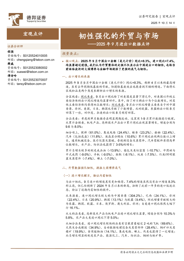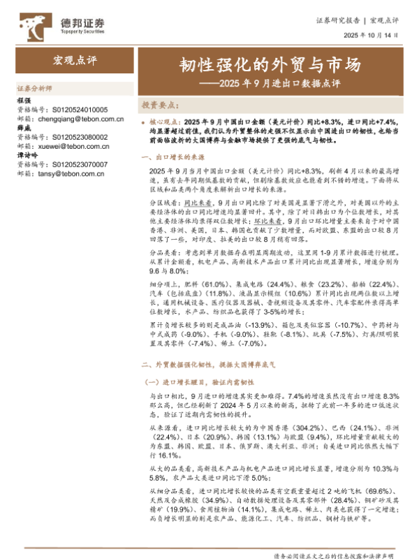 【德邦证券】【202510】韧性强化的外贸与市场——2025年9月进出口数据点评-5页