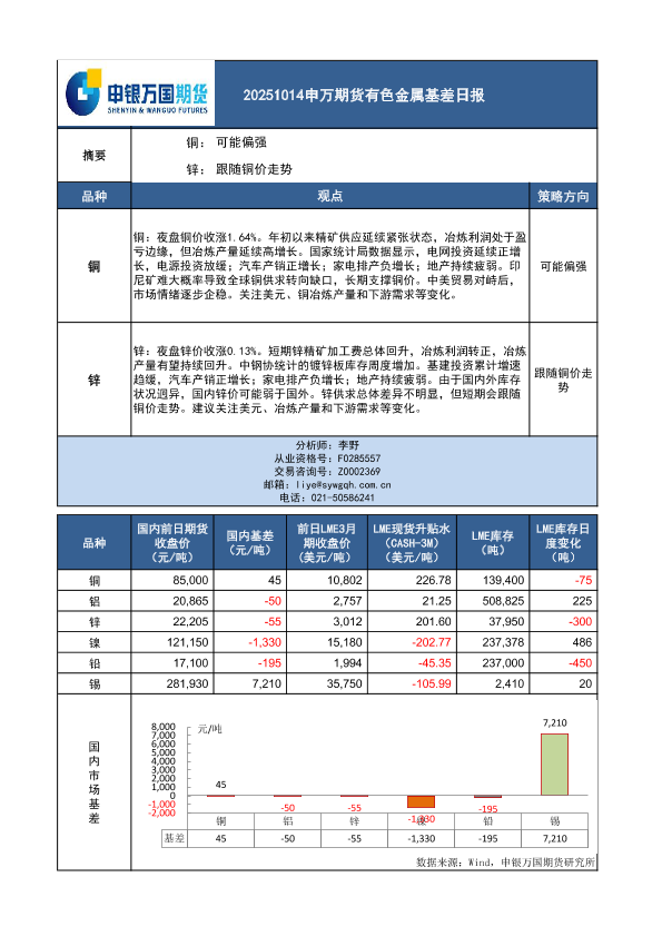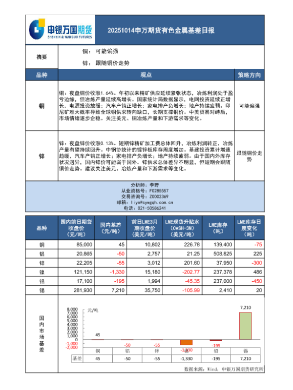 【申银万国期货】【202510】20251014申万期货有色金属基差日报-2页
