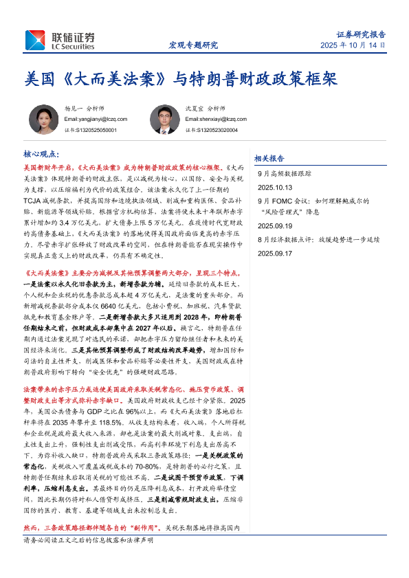 【联储证券研究院】【202510】美国《大而美法案》与特朗普财政政策框架-25页
