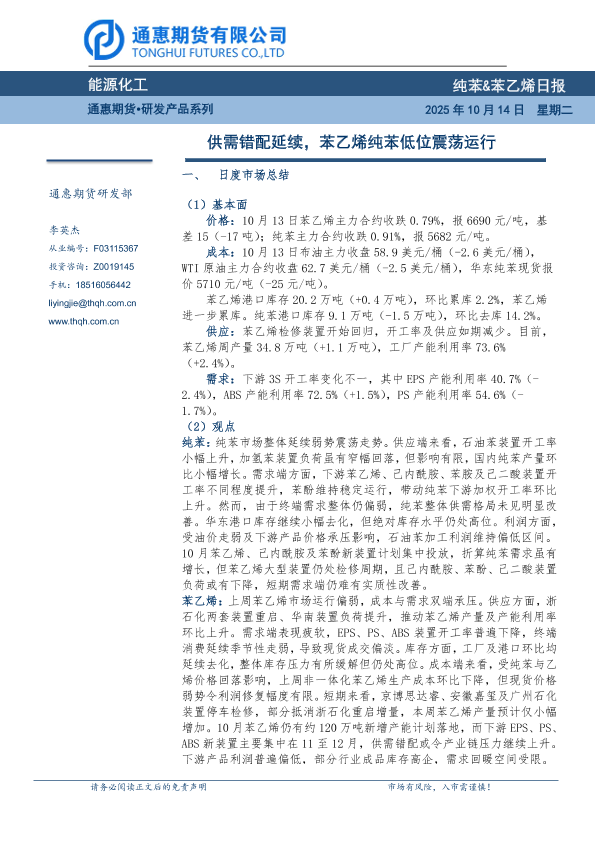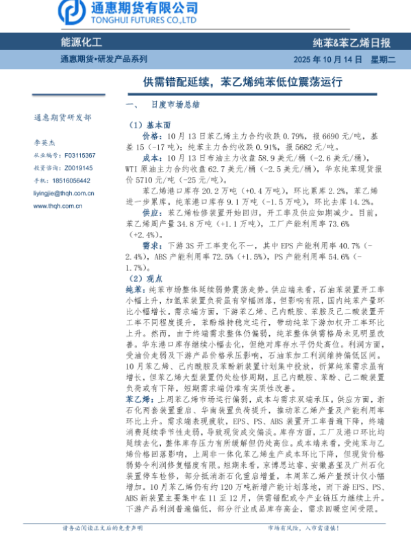 【通惠期货】【202510】纯苯&苯乙烯日报-7页