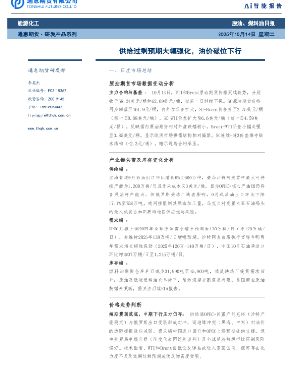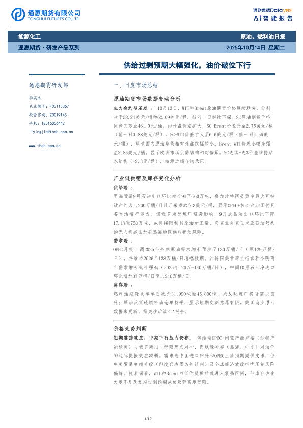 【通惠期货研发部】【202510】供给过剩预期大幅强化,油价破位下行-12页