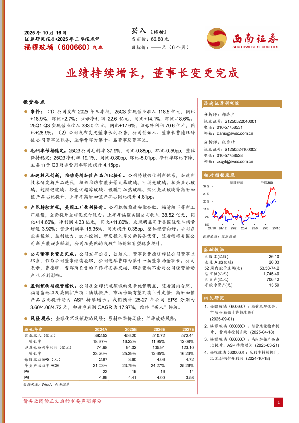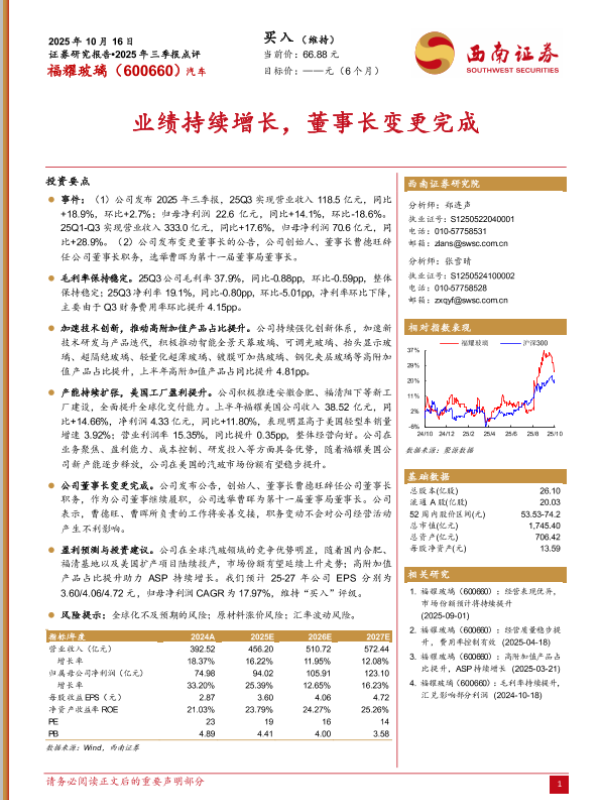 【西南证券】【202510】福耀玻璃(600660)2025年三季报点评-5页