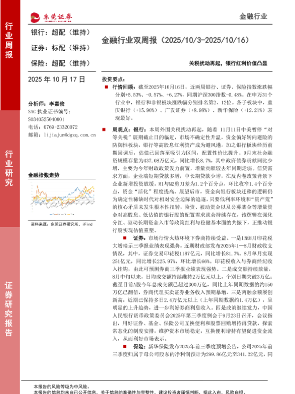 【东莞证券】【202510】金融行业双周报(2025/10/3-2025/10/16)关税扰动再起,银行红利价值凸显-15页
