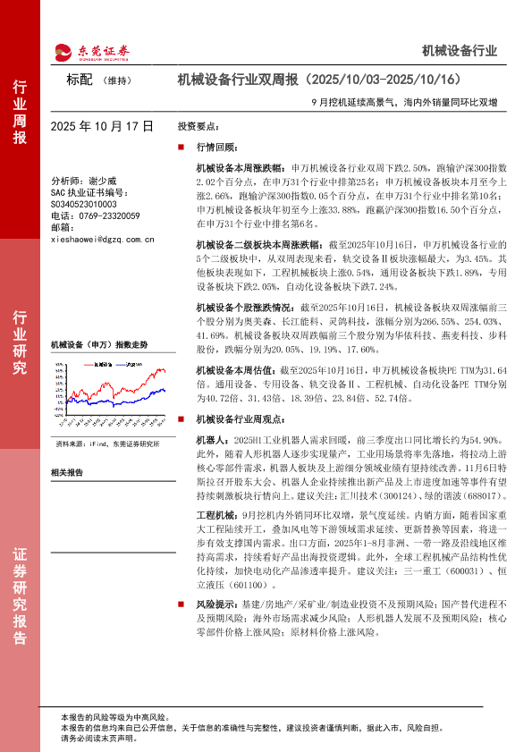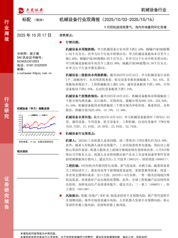 【东莞证券】【202510】机械设备行业双周报(2025/10/03-2025/10/16)-12页
