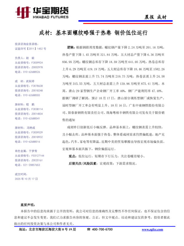 【华宝期货】【202510】成材_基本面螺纹略强于热卷_钢价低位运行-1页
