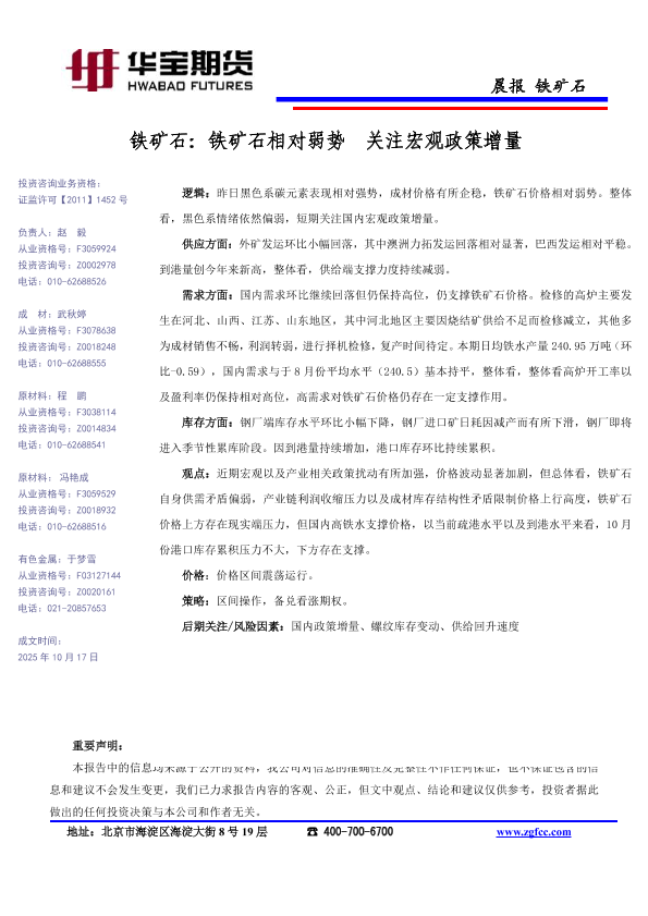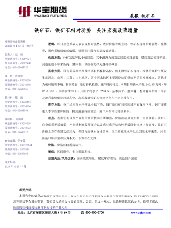 【华宝期货】【202510】铁矿石相对弱势关注宏观政策增量-1页