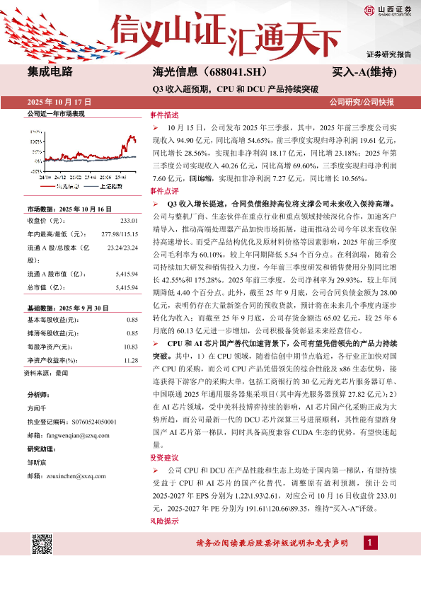 【山西证券】【202510】Q3收入超预期_CPU和DCU产品持续突破-5页