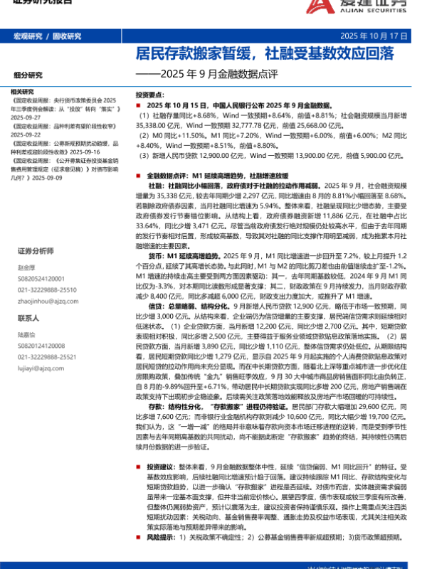 【爱建证券】【202510】居民存款搬家暂缓,社融受基数效应回落——2025年9月金融数据点评-9页