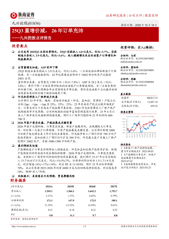 【浙商证券】【2025】25Q3量增价减, 26年订单充沛——九兴控股点评报告-3页