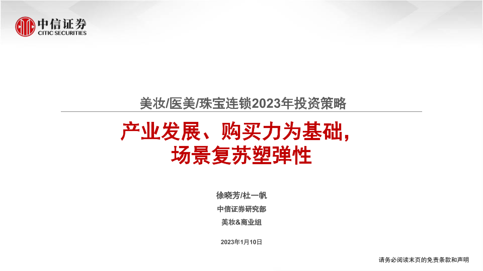 【中信证券】【20230110】美妆医美珠宝连锁行业2023年投资策略:产业发展、购买力为基础,场景复苏塑弹性-30页