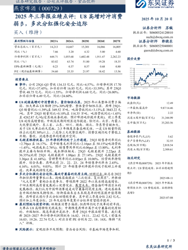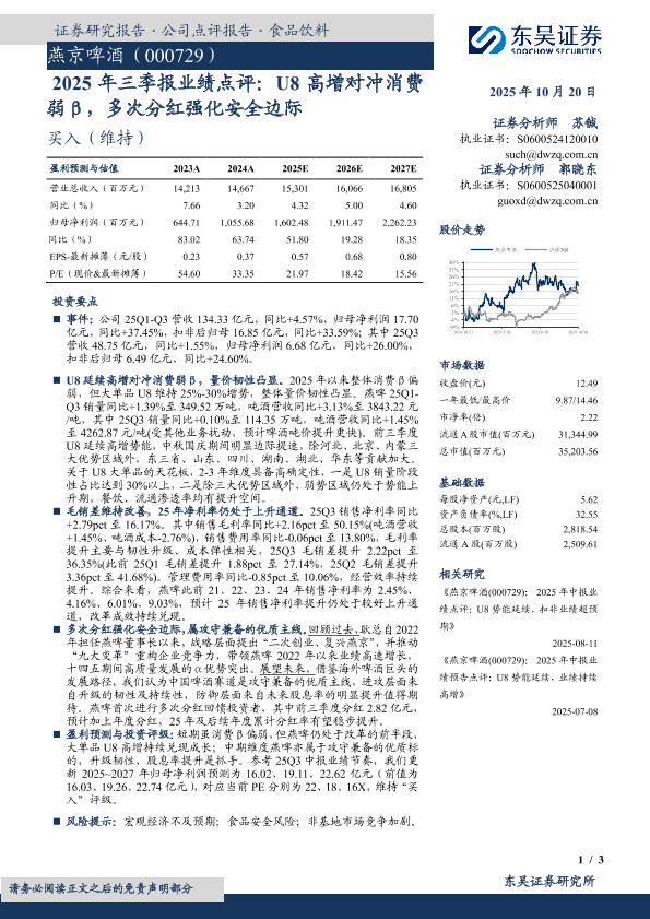 【东吴证券】【202510】2025年三季报业绩点评:U8高增对冲消费弱β,多次分红强化安全边际-3页