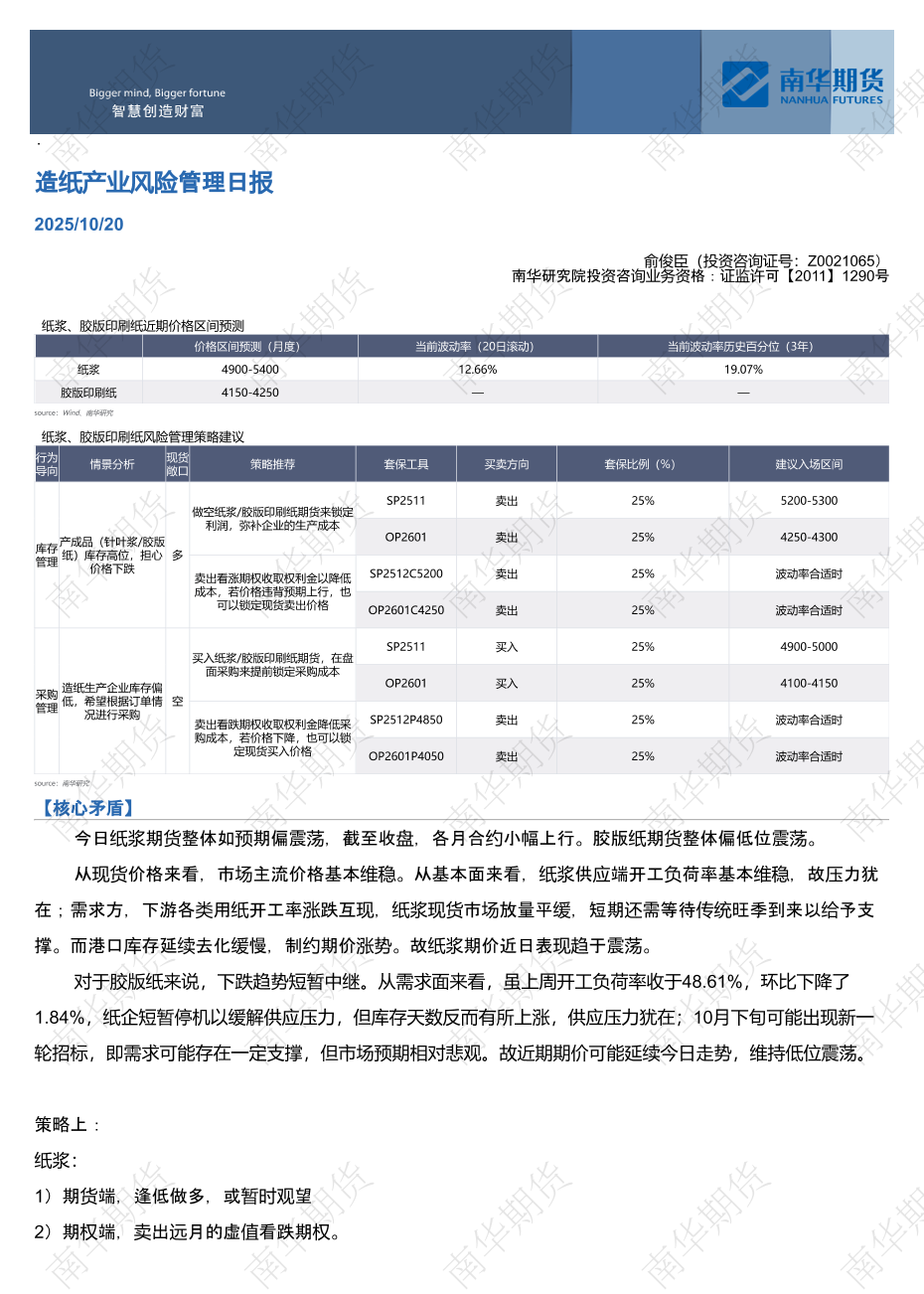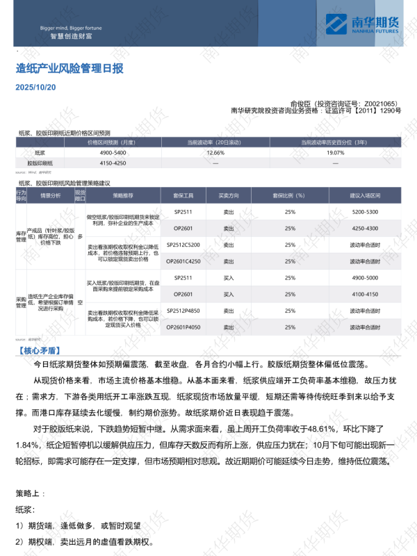 【南华研究院】【202510】造纸产业风险管理日报-4页