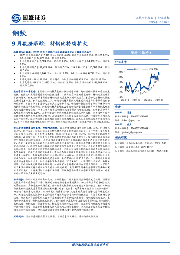 【国盛证券】【202510】钢铁9月数据跟踪_材钢比持续扩大-6页