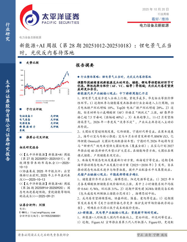 【太平洋证券】【202510】20251020-太平洋-新能源+AI行业周报(第28期20251012-20251018)_锂电景气正当时_光伏反内卷待落地-25页