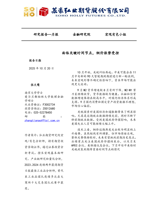 【弘业期货】【202510】面临关键时间节点,铜价涨势受挫-13页