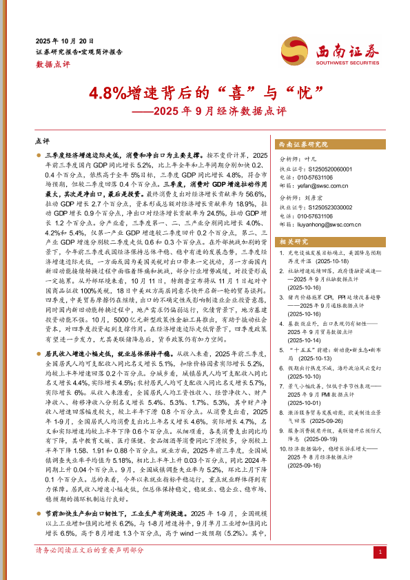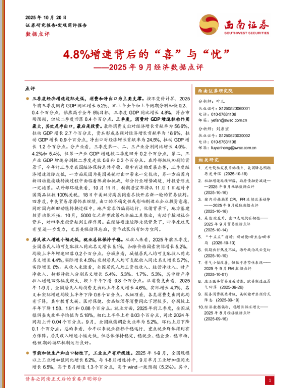 【西南证券】【202510】4.8%增速背后的“喜”与“忧”——2025年9月经济数据点评-8页