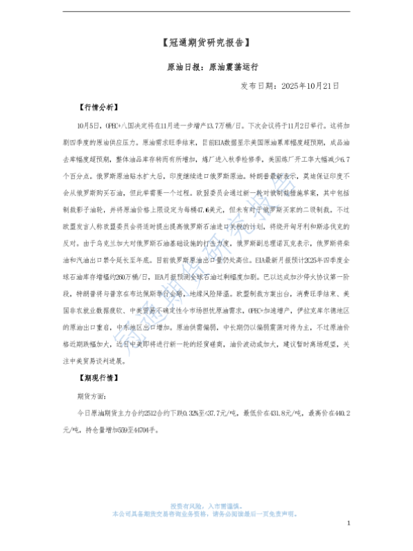 【冠通期货股份有限公司】【202510】原油震荡运行-3页