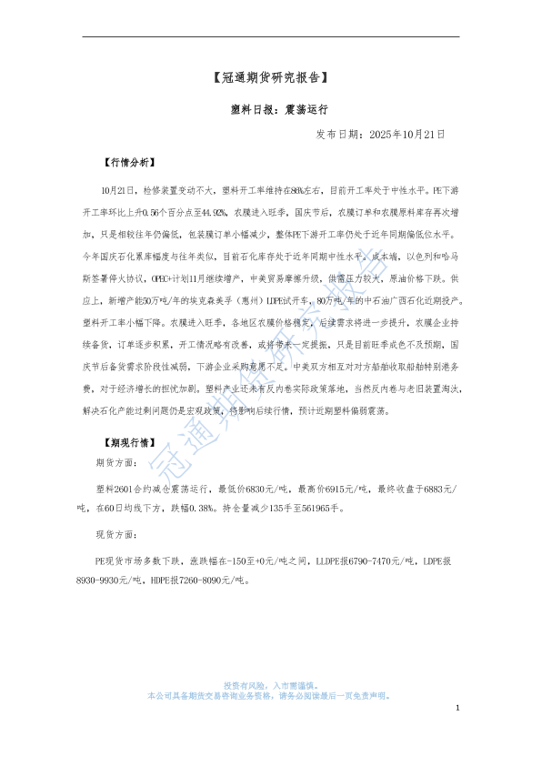 【冠通期货股份有限公司】【202510】塑料日报:震荡运行-3页