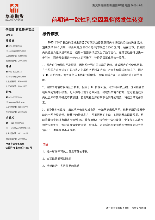 【华泰期货】【202510】前期锌一致性利空因素悄然发生转变-10页