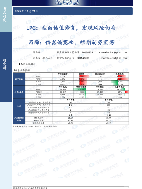【国泰君安期货】【202510】LPG:盘面估值修复,宏观风险仍存 丙烯:供需偏宽松,短期弱势震荡-4页