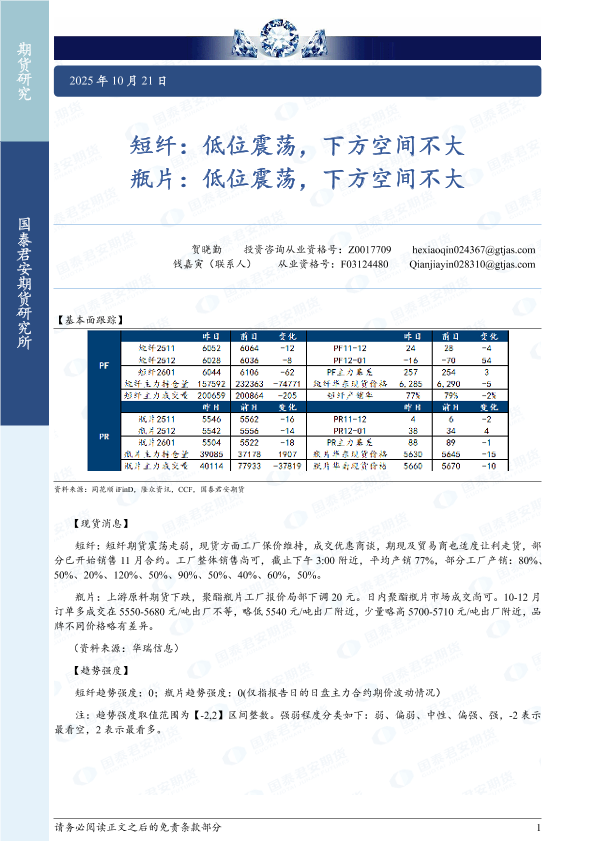 【国泰君安期货】【202510】短纤_低位震荡_下方空间不大_瓶片_低位震荡_下方空间不大-2页