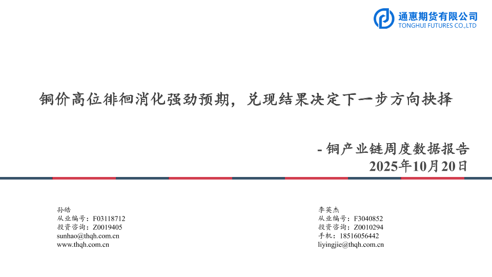 【通惠期货】【202510】铜价高位徘徊消化强劲预期,兑现结果决定下一步方向抉择-17页