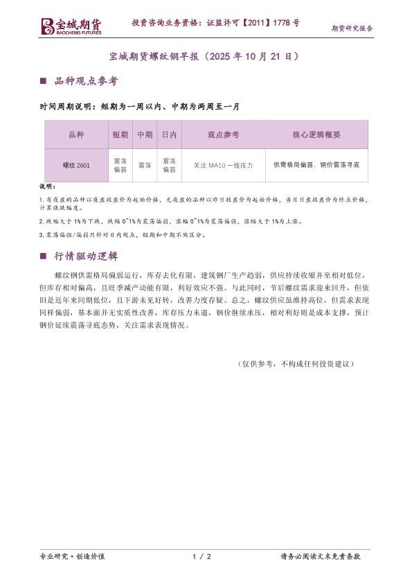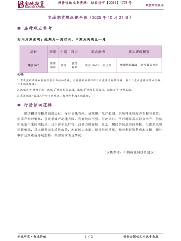 【宝城期货】【202510】宝城期货螺纹钢早报(2025年 10月 21日)-2页