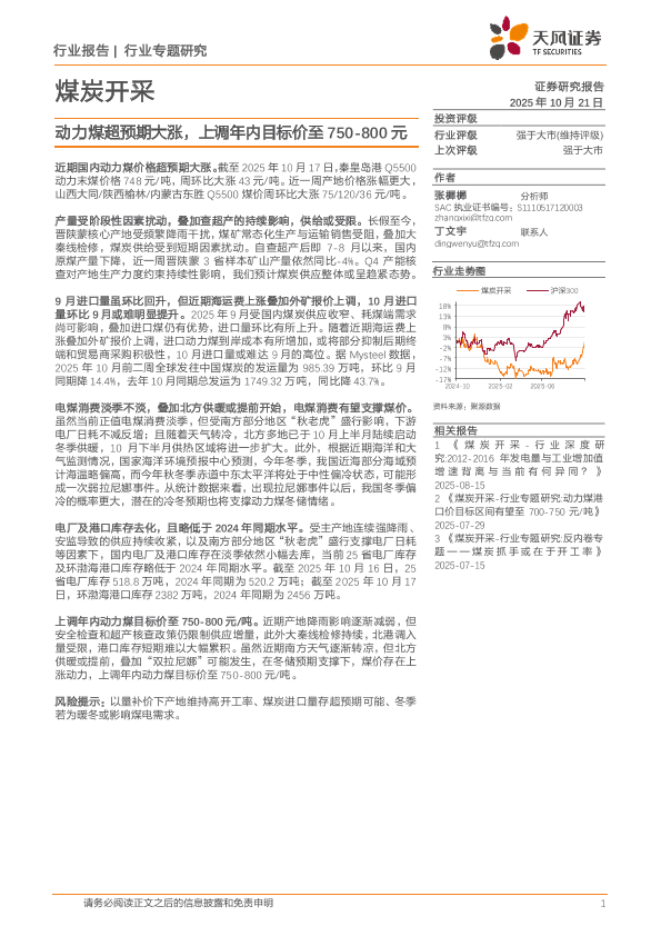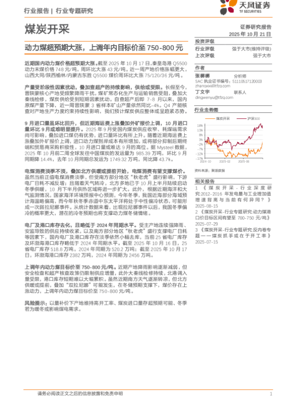【天风证券】【202510】煤炭开采-行业专题研究 动力煤港口价目标区间有望至 700-750元/吨-7页