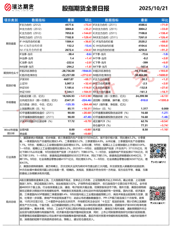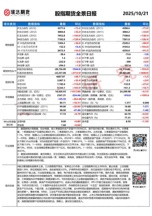 【瑞达期货股份有限公司研究院】【202510】股指期货全景日报-2页