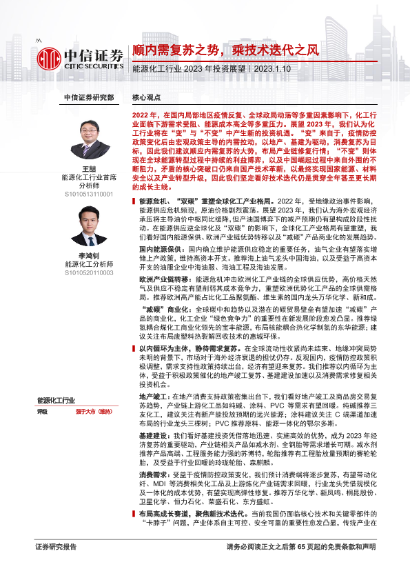 【中信证券】【20230110】能源化工行业2023年投资展望:顺内需复苏之势,乘技术迭代之风-66页