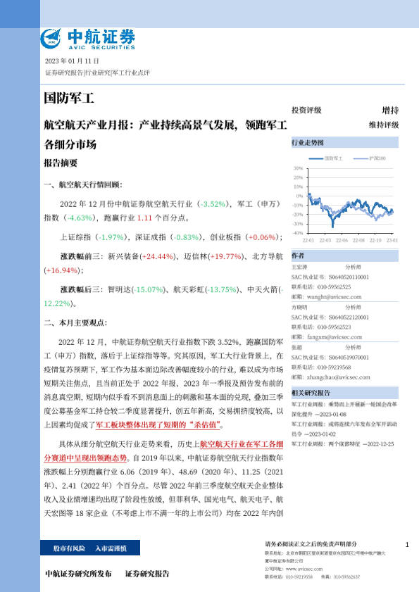 【中航证券】【20230111】航空航天产业月报:产业持续高景气发展,领跑军工各细分市场-45页
