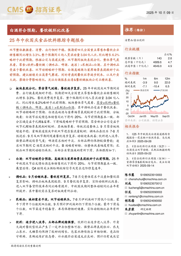 【海通证券】【202510】25年中秋国庆食品饮料跟踪专题报告 消费品/食品饮料-10页