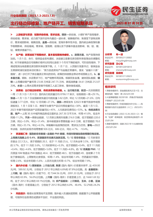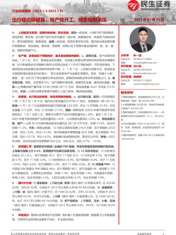 【民生证券】【20230110】行业信息跟踪:出行链边际修复,地产链开工、销售短期承压-29页
