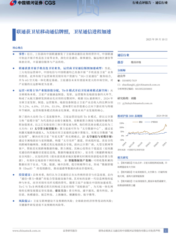 【银河证券】【202509】联通获卫星移动通信牌照,卫星通信进程加速-2页
