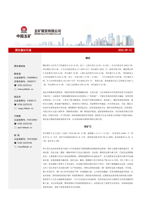 【五矿期货】【202509】黑色建材日报-11页