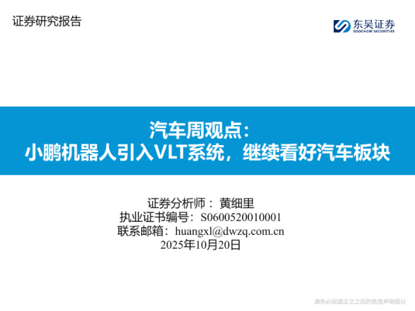 【东吴证券】【202510】汽车周观点:小鹏机器人引入VLT系统,继续看好汽车板块-25页